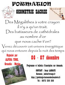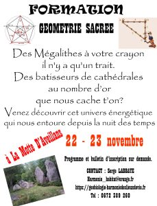 2 Week-end de 2 jours sur 2 lieux différents pour vous offrir plus de choix de découvrir un univers, celui de la géométrie sacrée.